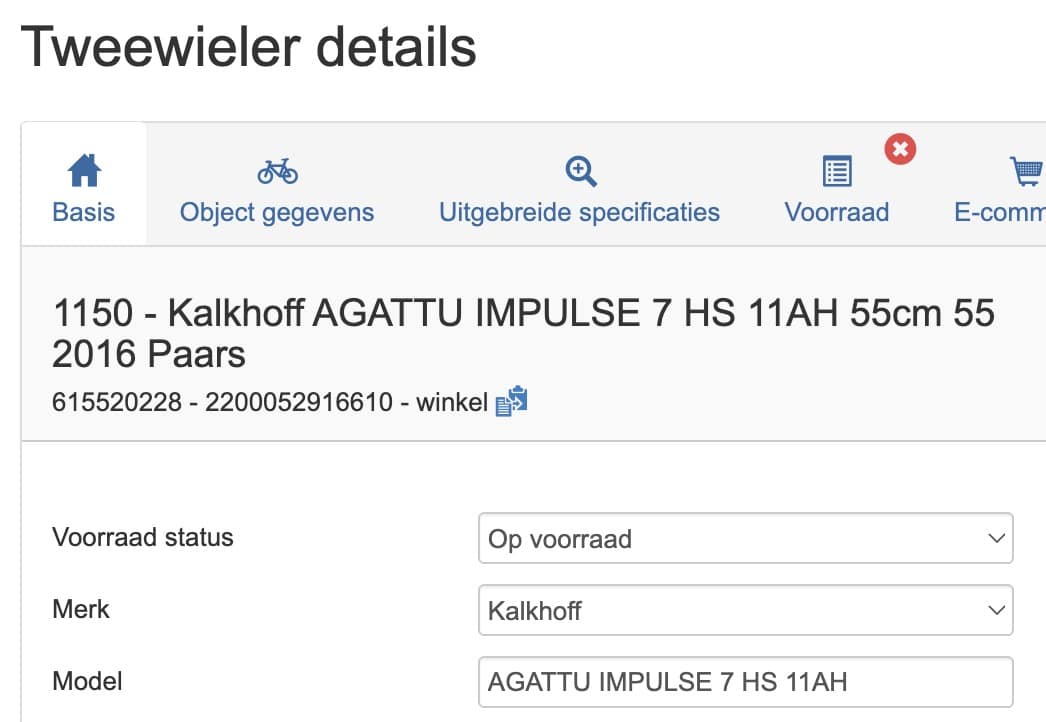 Het is ook mogelijk om handmatig in WooCommerce een variatie aan te maken en alleen de voorraad of prijs te koppelen met Cyclesoftware d.m.v. de SKU (artikelnummer).